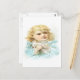La plus belle petite fille, des boucles dorées et une robe bleue délicate, tenant doucement une colombe blanche dans ses bras, une image vintage qui est vraiment difficile à résister.