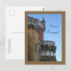 Gargoyles, parapets, balustrades, le Palais portugais de la Péna à Sintra a tout pour plaire. Voici un joli détail du monde de l'imaginaire créé par le style architectural imaginatif du romantisme employé par le roi Ferdinand II lorsqu'il a transformé les ruines d'un ancien monastère en château sur un sommet de montagne surplombant l'océan Atlantique. Des éléments gothiques, égyptiens, mauresques et de la Renaissance sont en évidence dans ce site du patrimoine mondial de l'UNESCO en Europe. Carte postale rouge, jaune et bleu pour votre collection.