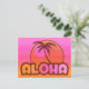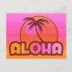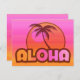 Design hawaïen avec palmier et coucher de soleil dans les tons rose et orange. Texte de style rétro dit ALOHA. Arrière - plan de dégradé rose et orange. Customisez-le avec votre propre texte personnel. Garde ce sentiment de vacances toute l'année. PinkInkArt original !