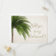 Une Palmeraie Tropicale 'Serez-vous ma Servante d'Epoux ?' carte postale. Une invitation avec un Palm Tree sur arrière - plan léger. Faisant partie d'une gamme de suite de faire-part de mariage de Just Fine Designs.