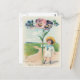 Très jolie carte du Lapin toujours pressé d'Alice . Belle qualité de l'impression en rose pastel.