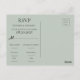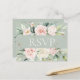 Carte postale budgétaire à fond vert sauge avec monogramme floral rose élégant “RSVP”.