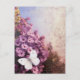 Carte Postale Papillon blanc Fleurs violettes Impressionniste