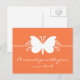 Cartes postales personnalisables, simples et sucrées, avec une jolie silhouette de papillon et une bordure tourbillonnante délicatement élégante. Cette belle carte postale peut être personnalisée avec un doux message à un membre de la famille ou un ami! Il vous suffit d'ajouter votre propre texte dans les espaces prévus ou de cliquer sur le bouton "Customiser" pour modifier les polices, les couleurs du texte ou ajouter/supprimer du texte.