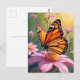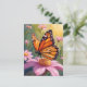 Carte postale Papillon Monarque rose Fleur Floral Peinture