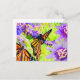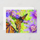 Éclairez la journée de quelqu'un avec cette carte postale avec des papillons monarques d'art, de la lavande et des fleurs de la passion violette.