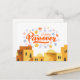 Cette carte postale est ornée d'un design joyeux et coloré pour les fêtes de Pâque. La pièce maîtresse de la mise en page est l'expression "Bonne Pâque", rendue dans un script animé et fluide qui enjambe la carte dans les tons d'orange chaud et des touches de violet, apportant une ambiance festive au message. Autour de l'accueil se trouve un ensemble fantastique de fleurs et de coeurs dans des violets, des bleus et des oranges doux, créant une atmosphère de bonheur et de joie printanière. Au-dessous de la typographie festive, une rangée pittoresque de bâtiments dorés stylisés évoque un paysage moyen-oriental traditionnel, en résonance avec le contexte historique de l'histoire de la Pâque. Les éléments design sont soigneusement placés contre un arrière - plan blanc propre, donnant des couleurs vives et des illustrations ludiques pour se démarquer. Cette carte postale est une façon charmante de partager l'esprit de la Pâque, remplie d'illustrations vibrantes qui reflètent à la fois les aspects historiques et festifs de la fête.