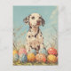 Célébrez Pâques avec le charme intemporel d'un dalmate dans cette carte postale de style vintage. Doté de l'emblématique chien tacheté entouré d'oeufs pastel de Pâques, de fleurs de printemps fleuries et d'accents festifs, ce design est parfait pour les amoureux dalmate, collectionneurs et amateurs d'art de vacances classique. Un délicieux souvenir pour répandre la joie de Pâques.