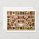 Cette carte postale est la reproduction d'une publicité vintage pour les fruits, les légumes et les graines de fleurs.