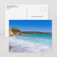 Carte postale avec une photographie représentant une plage sur l'île grecque de Crète. Une belle plage tropicale bleue avec une surf écumant. Destination de voyage merveilleuse et tranquille.
