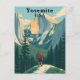 Une carte postale colorée de style vintage du parc national de Yosemite, États-Unis, mettant en valeur le célèbre Half Dome et les forêts de pins environnantes. Parfait pour les voyageurs, les randonneurs et les collectionneurs d'art de parcs nationaux.