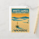 Découvrez la beauté surréaliste du sud-ouest avec cette carte postale d'inspiration voyage vintage qui présente le parc national des Sables blancs du Nouveau-Mexique. Présentant des dunes de gypse blanches et immaculées sous un ciel désertique, il capture le charme d'antan de ce paysage unique. Parfait pour les aventuriers, les amoureux de la nature et les amateurs d'esthétique de voyage rétro.