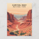 Profitez de la beauté intemporelle du parc national du Capitol Reef avec cette carte postale de style vintage, avec ses falaises de roche rouge emblématiques et ses vues panoramiques sur le désert. Un endroit idéal pour les amateurs de parcs nationaux et les collectionneurs.