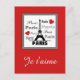 Illustration de design de texte parisien avec tour Eiffel et décoration de coeurs rouges en carré noir et blanc sur arrière - plan rouge
