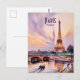 Carte Postale Paris Eiffel Tower Travel Watercolor Custom Text
