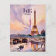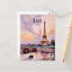 Send a beautiful greeting from the City of Light with this vintage watercolor Paris travel postcard. Featuring a stunning, romantic illustration of the iconic Eiffel Tower reflecting over the Seine River at sunset, this artwork captures the timeless charm of France. Perfect for mailing to friends and family during your European vacation, using as a chic save-the-date, or keeping as a beautiful travel souvenir and mini art print for your wall decor. Easily personalize the text to add your own custom message or travel dates!