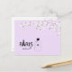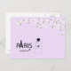 Jolie floraison sur une douce couleur mauve arrière - plan, les mots parfums parisiens avec le détail de la tour Eiffel. Une bouteille de parfum fantaisie à côté.