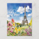 Un aquarelle de la Tour Eiffel à Paris, France, avec un avant-plan de fleurs colorées.