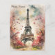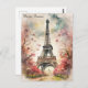 Carte Postale Paris romantique Tour Eiffel Aquarelle Florale