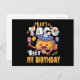 Le design présente un taco avec un chapeau mexicain et des livres et lit : Parlons Taco De Mon Anniversaire. Parfait le 5 mai Cinco De Mayo pour une fête d'anniversaire sur le thème du Mexique.