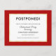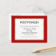 Vous avez besoin de reporter votre événement ? Envoyez cette carte postale pour informer vos invités du changement de plan. Le design simple est accentué par une bordure rouge foncé et or.
