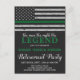 Ligne verte mince Invitations militaires de retraite. Célébrez des années de service dévoué, votre retraite militaire et vos amis et votre famille invitations à votre fête militaire avec cette invitation à la retraite à drapeau mince rustique. Etats-Unis Drapeau américain dans les couleurs du drapeau militaire, noir vert blanc usé design. Consultez notre collection pour obtenir des cadeaux de retraite, des faveurs pour les militaires et des fournitures. DROIT D'AUTEUR © 2021 Judy Burrows, Black Dog Art - Tous droits réservés. Retraite militaire Mince Ligne verte Flag Party Invitation