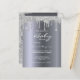 Devant : Un arrière - plan à l'aspect métallique faux argenté. Décoré avec des gouttes de parties scintillant en faux argent, look goutte à goutte de peinture. Modèles pour le nom de la mère à être et les détails de la fête. Le nom et le texte : Bébé sont écrits avec un script de style écrit à la main, des lettres de couleur blanche. Dos : faux arrière - plan argent avec faux gouttes de parties scintillant argent. Une invitation baby shower parfaite pour célébrer un bébé garçon ou un genre neutre ! Conseil : Si vous ne voulez pas qu'il ressemble à une carte postale, cliquez sur customiser, allez à l'arrière et retirez le séparateur et le timbre postal.