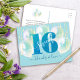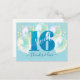Voici une façon amusante et pétillante pour la fille d’anniversaire de montrer sa reconnaissance à tous ceux qui ont soutenu son événement marquant! Envoyez cette carte postale étonnante, simple, festive, moderne, personnalisée. Une parties scintillant bleue turquoise, graphique et audacieuse "16" et un script manuscrit superposent des ballons verts bleus et des lampes à cordes brillantes d'or sur un arrière - plan bleu aqua clair doux. Sur le devant, personnalisez avec son nom. Tapez une note personnalisée au verso ou laissez vide pour votre message manuscrit. Ajoutez également votre adresse de retour. Idéal pour la fashionista en herbe qui aime la parties scintillant moderne et le glam et s'assure d'ajouter une touche élégante à sa correspondance! Il suffit de taper son nom sur le devant, d'ajouter une note personnalisée et une adresse de retour sur le dos, et vous pouvez facilement personnaliser cette carte postale de remerciement. S'il vous plaît, envoyez-moi un message avec toute question ou demande.