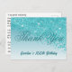 Carte de remerciements glamour avec Parties scintillant Bleue Turquoise en chute libre et dégradé Bleu Turquoise et étoiles brillantes.