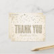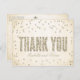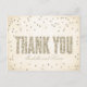 Ce design mariage moderne et élégant de carte postale par The Spotted Olive™ présente une image de parties scintillant en or des points confetti sur un arrière - plan patiné doux avec les mots "MERCI" remplis d'une image de parties scintillant en or. VEUILLEZ NOTER : CE DESIGN COMPREND UNE IMAGE DE PARTIES SCINTILLANT CONFETTI. IL N'Y A PAS DE PARTIES SCINTILLANT, DE CONFETTI OU D'EMBELLISSEMENTS. IL S'AGIT D'UN DESIGN IMPRIMÉ PLAT. DROIT D'AUTEUR ©2014 The Spotted Olive™. Tous droits réservés.