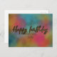 Design moderne et tendance carte postale d'anniversaire personnalisée avec le texte "Joyeux anniversaire" écrit en faux script de parties scintillant or sur un arrière - plan coloré aquarelle.