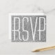 RSVP dans une longue police élégante et tendance contre une photo bokeh de parties scintillant gris ou argent pour votre mariage. Vous pouvez augmenter la taille de la photo sur la zone d'impression. Créez votre propre design.