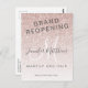 Parties scintillant d'or Rose "Grand réouverture" maquillage et salon de coiffure COVID Faire-part. Salon réouverture design avec parties scintillant rose rose rose rose vif, arrière - plan blanc et un logo monogramme design modèle que vous pouvez customiser. ©Elke Clarke. Personnalisez ce design personnalisé avec votre propre texte et vos détails professionnels. A le texte standard pour dire à vos clients que votre entreprise est sécuritaire à visiter. "Avec les nouvelles mesures de sécurité COVID19 en place pour garder nos clients et nos employés en sécurité."