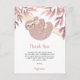 Cette adorable Carte de remerciements de Baby shower de petite fille présente une jolie parties scintillant rose en or souriante, un bébé paresseux, accroché au feuillage d'aquarelle dans les tons roses. Facile à personnaliser. Aquarelle originale © Michele Davies.