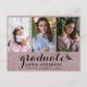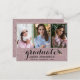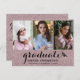 Partagez la joyeuse nouvelle de votre graduation avec cette carte postale d'invitation à la parties scintillant rose fantaisie. Toutes les photos et le texte sont simples à customiser. Le design comprend une typographie minimaliste moderne avec un diplôme écrit à la main et 3 de vos photos personnalisées sur le devant. Un casquette de graduation est ajouté pour l'occasion joyeuse, gardez-le ou supprimez-le à votre goût. Cette carte postale faire-part dorée unique est une façon élégante d'informer vos amis et votre famille les plus proches de visiter votre joyeuse journée de célébration.