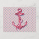 CARTE POSTALE PARTIES SCINTILLANT ROSE FILLE ANCRE DOTS MOTIF