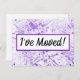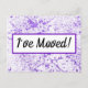La parties scintillant violette est éclaboussée sur cette carte postale qui annonce votre nouvelle adresse. Le dos est laissé vide pour que vous personnalisiez avec vos détails.