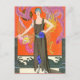 Style Art Déco Illustration d'une jeune femme vêtue d'une robe de soirée noire aux accents floraux bleus de George Barbier. George Barbier 1882 - 1932 fut l'un des grands illustrateurs français du début du 20ème siècle. Il est bien connu pour ses commandes de conception de costumes de théâtre et de ballet.