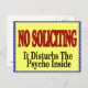 Carte Postale Pas de sollicitation, Psycho à l'intérieur