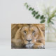 Paroles d'encouragement tirées du livre de poèmes de Walt Whitman : Leaves of Grass, avec l'image d'un autre animal indompté en gros plan sur le visage d'un lion sauvage : ❝Moi non plus je ne suis pas un peu apprivoisé, moi non plus je ne suis pas traduisible.❞ Personnalisez la carte postale en ajoutant une photo d'un récent diplômé, ou d'un ami pour offrir des félicitations pour un nouvel emploi. Modifiez le texte pour ajouter une autre courte citation inspirante de Whitman ou modifiez la courte biographie de l'auteur au verso. © dotpattern