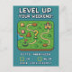 « Passez votre week-end au niveau supérieur ! » - Carte postale en pixel art pour les amateurs de jeux vidéo et les fans de Nintendo
