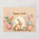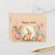 Cette jolie carte de voeux de Pâques aux couleurs pastel comprend un lapin de Pâques entouré d'oeufs et de fleurs de printemps. L'arrière - plan de la carte de couleur mandarine est sûr d'attirer l'oeil et de surprendre vos proches qui la reçoivent. Joyeux Pâques !