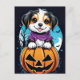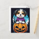 Infuse Halloween avec un charme adorable en utilisant cette carte postale pleine de charme ! Un mignon chien perche au-dessus d'un citrouille sculpté, incarnant l'esprit de l'effroi ludique. Une grande lune brille un peu plus loin, projetant une douce lueur sur cette scène délicieuse. Partagez la joie d'Halloween avec cette carte postale attachante.