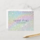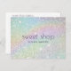 Une image de fond pailleté holographique fournit un design sucré sur cette carte postale personnalisée. Les paillettes colorées rappellent les friandises sucrées créant le design parfait pour les boulangeries, les décorateurs de gâteaux, les confiseries, les blogueurs culinaires, les friandises et plus encore. Veuillez contacter le concepteur pour obtenir de l'aide pour les noms plus longs ou la composition typographique spéciale. Utilisez ces cartes postales pour envoyer des annonces, des promotions spéciales ou pour la correspondance et les remerciements avec vos clients. Art et design © Studio de design 1201AM | www.1201am.com