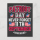 Patriot Day Never Forget 9 11 design in memory of the people killed in the September 11 attacks of the year 2001.