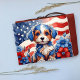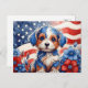 Envoyez un message d'unité et de liberté avec notre charmante carte postale Patriotic Pup Amidst Blooms. Cette charmante carte présente un adorable chiot entouré d'une mer de fleurs rouges et bleues, sur fond de drapeau américain. C’est le moyen idéal de partager l’esprit américain avec des amis et des membres de la famille. Cette image est générée par l'IA.