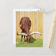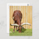 Ankole-Watusi (Bos taurus) pâturant devant un panneau en lattes de bois