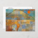 Une carte postale d'art avec le tableau de Paul Klee (1879-1940) intitulé Ad Parnassum (1932). Klee est un artiste allemand né en Suisse. Un tableau pointilliste d'une maison multicolore et d'un soleil orange.