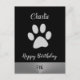 Carte Postale Paw Chien Argent sur arrière - plan noir