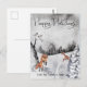 Carte Postale Paysage d'hiver enneigé renard Aquarelle Vacances